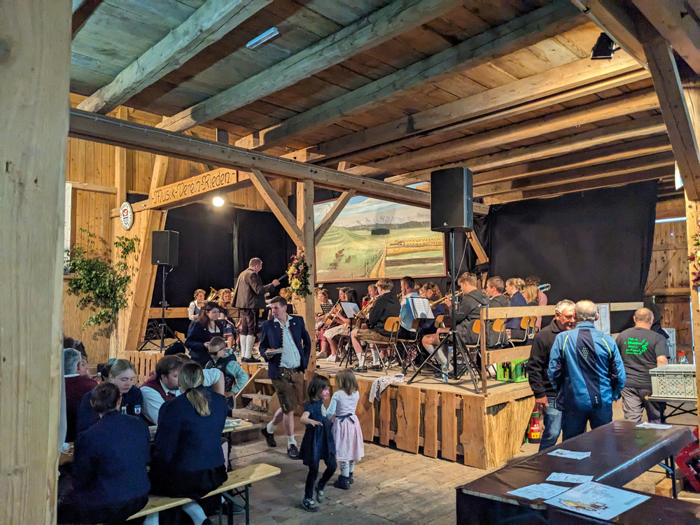 Das Stadlfest war gut besucht. Zum Frühschoppen spielte der Musikverein Mauerstetten, anschließend die Jugendkappelle. Serviert wurde Kaufbeurer Aktienbier. Erst aus dem Fass, anschließend die Notreserven in Form von Flaschenbier.