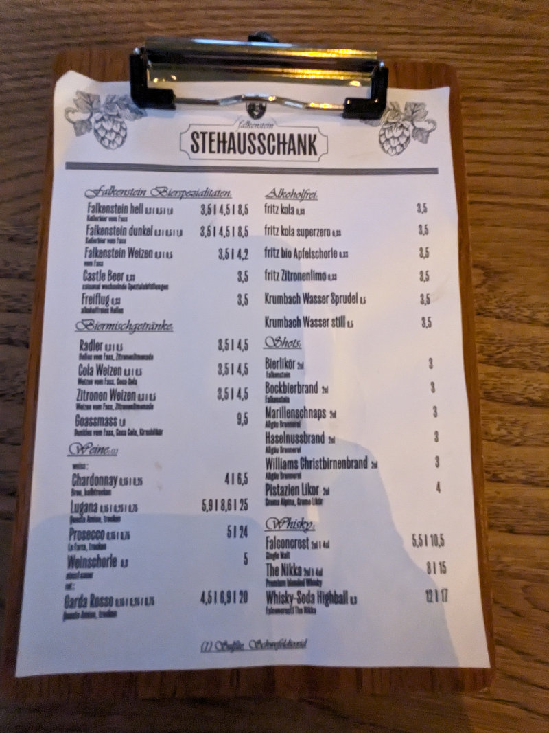 Kredenzt wird Falkensteiner Bier, was auch sonst, ansonsten gibt es zahlreiche alkoholfreie Getränke. Selbstbedienung an der Bar mit gleichzeitigem zahlen. Ich mag das, da man so auch schnell nach dem Bier verschwinden kann. Das Bier wurde schnell gezapft.