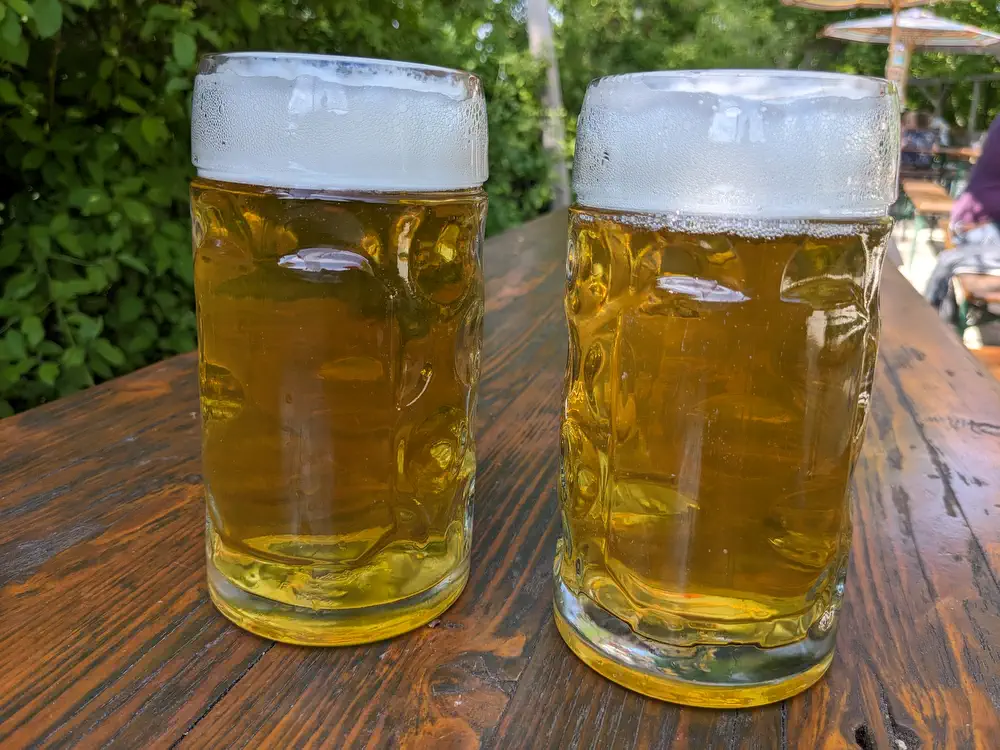 Wir waren Nachmittag da, der Biergarten füllte sich dann recht schnell. Bier war lecker, so dass natürlich ein zweites bestellt wurde.